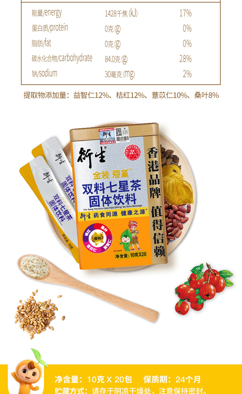 衍生金裝愛(ài)童雙料七星茶固體飲料