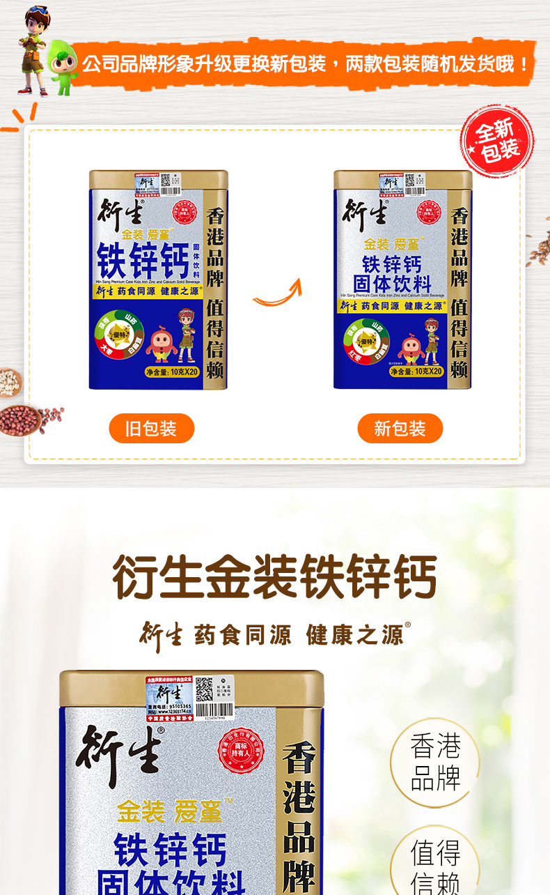衍生金裝愛(ài)童鐵鋅鈣固體飲料