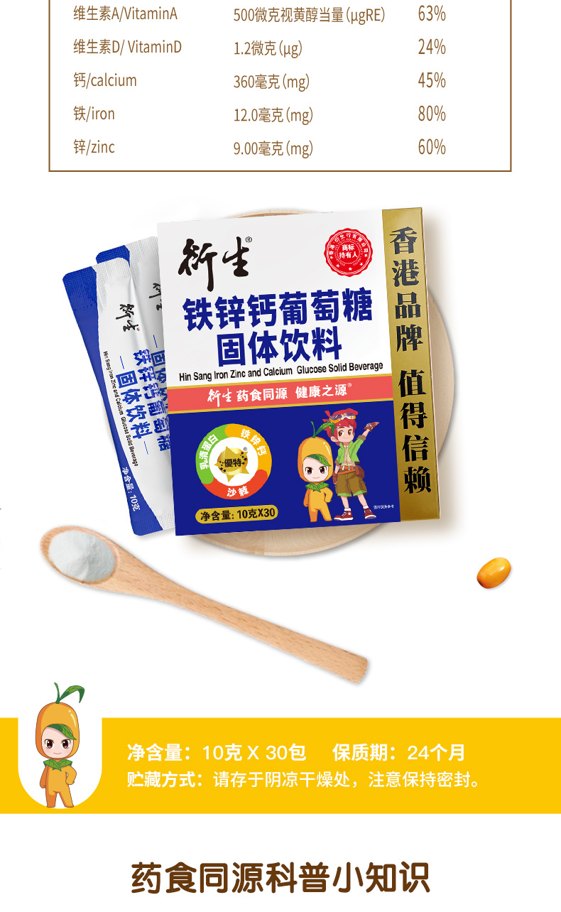 衍生鐵鋅鈣葡萄糖固體飲料